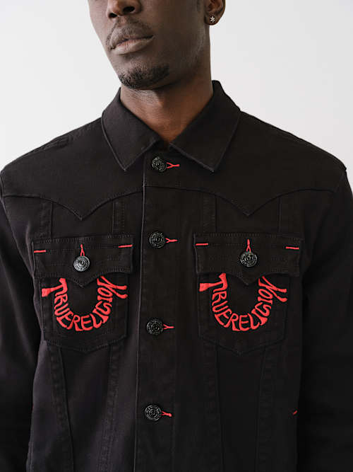 True Religion Men s Denim Trucker Jacket Body Rinse Black XX Large Very well made.