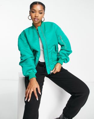 Miss Selfridge ruched sleeve bomber jacket bright green Very well made.