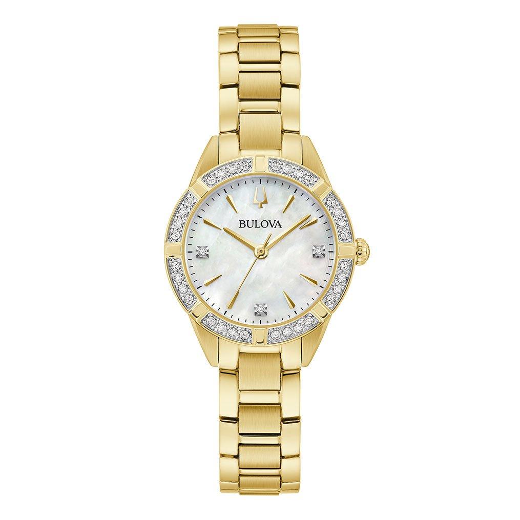 Bulova Sutton 28mm Yellow Gold Plated Diamond Ladies Watch 98R297 28 mm Mother of Pearl Dial Beaverbrooks Very well made.