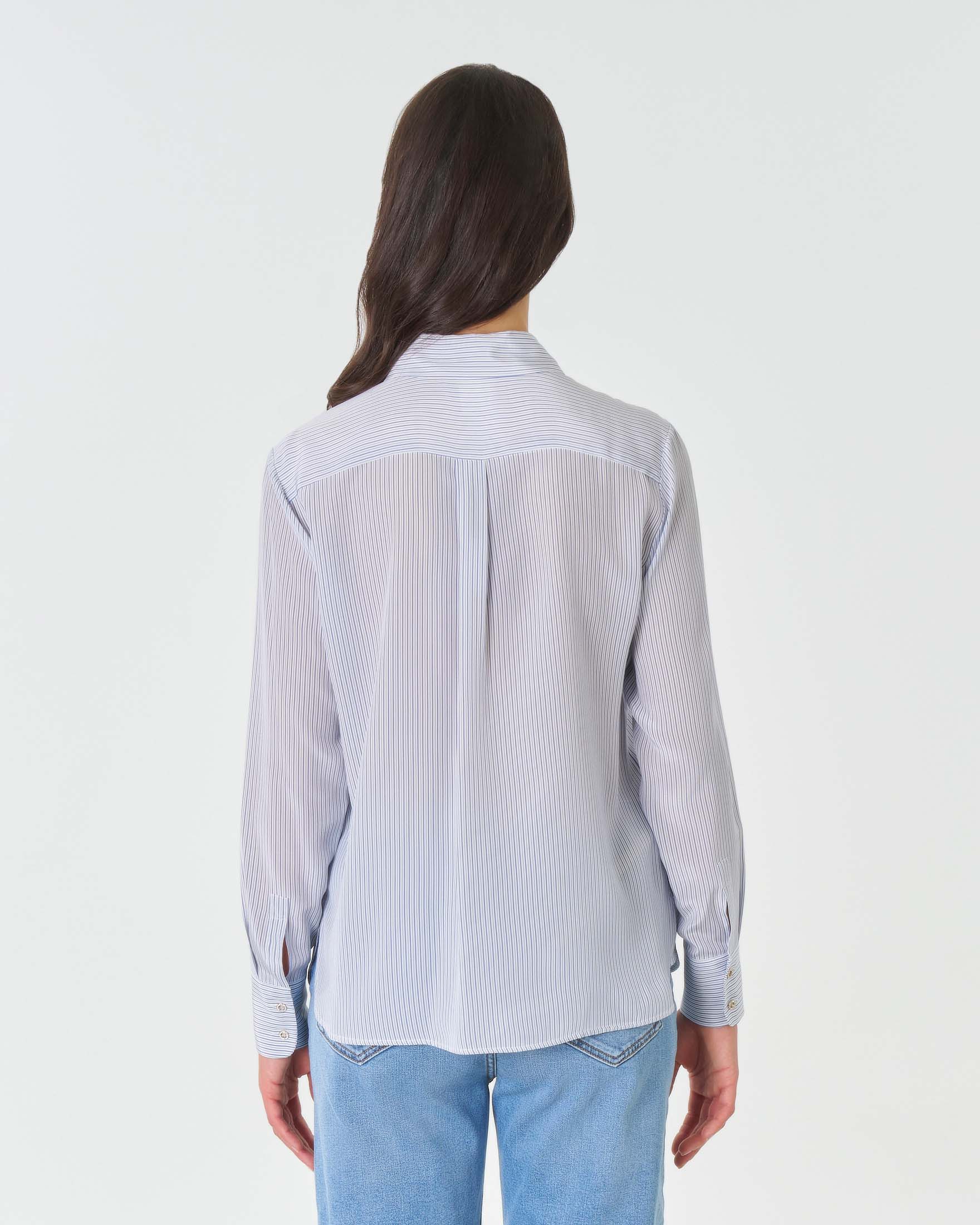 Camicia in crepe de Chine di seta a righine bianche e azzurre con bottoni gioiello Very well made.