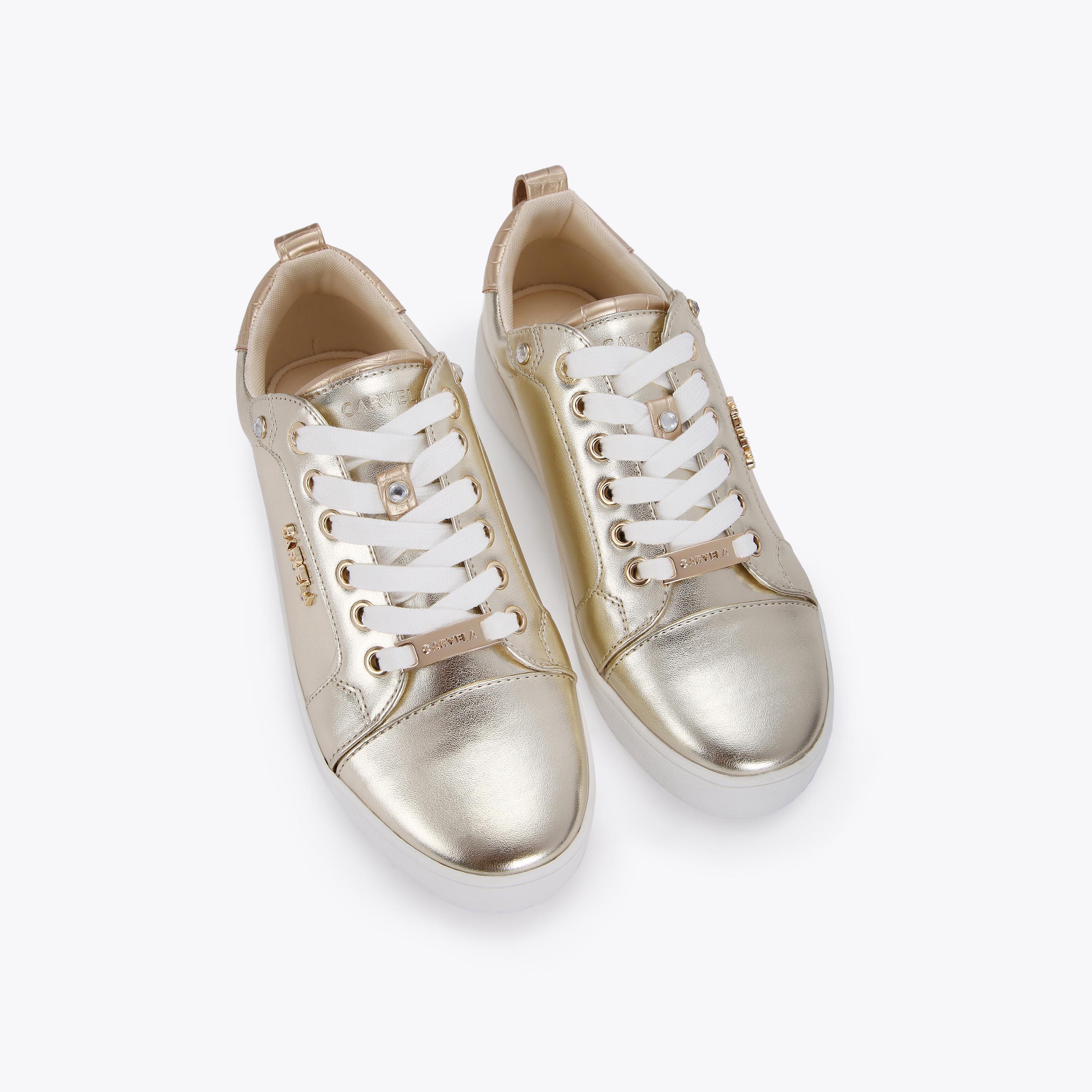 JOYFUL Gold Lace Up Trainers by CARVELA Very well made.