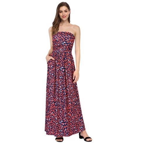 Women Strapless Floral Print Bohemian Boho Maxi Dress Casual Off Shoulder Beach Party Dress With Pockets xl A red Geometric Print Target Very well made.