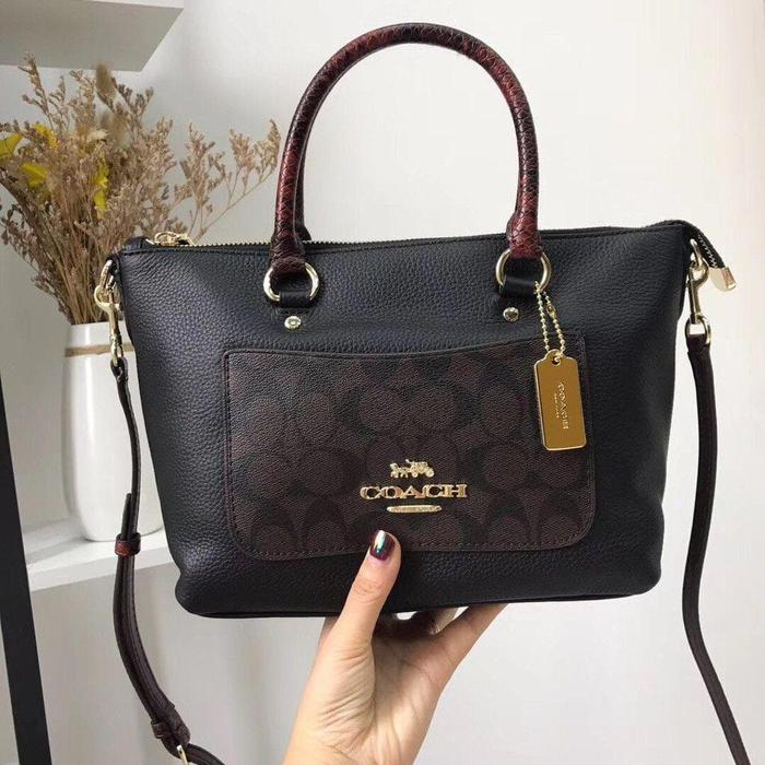 Jual Tas Coach Mini Emma Satchel Signature Color Block Brown Black Very well made.