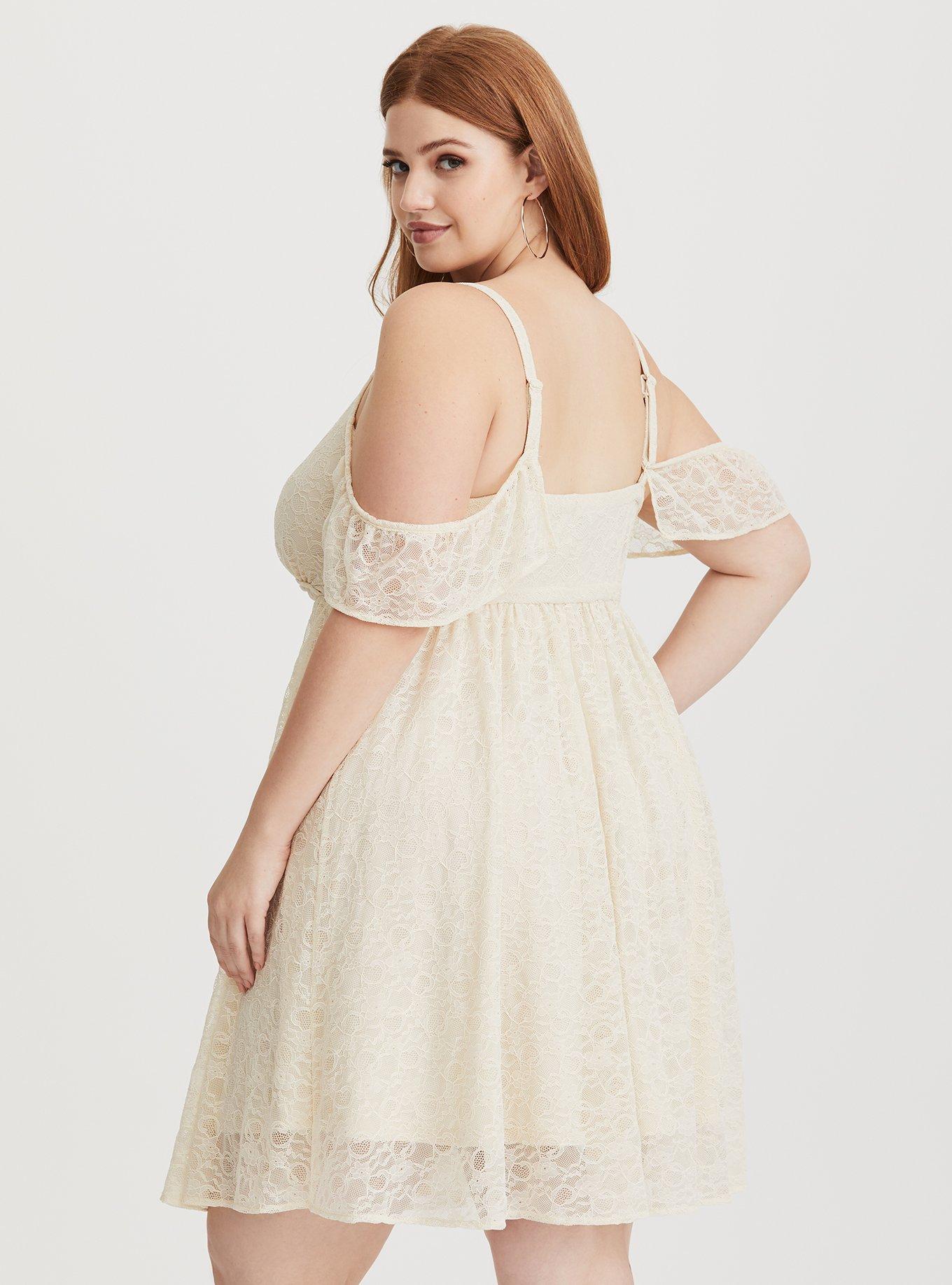 Plus Size Ivory Lace Cold Shoulder Skater Dress Torrid Very well made.