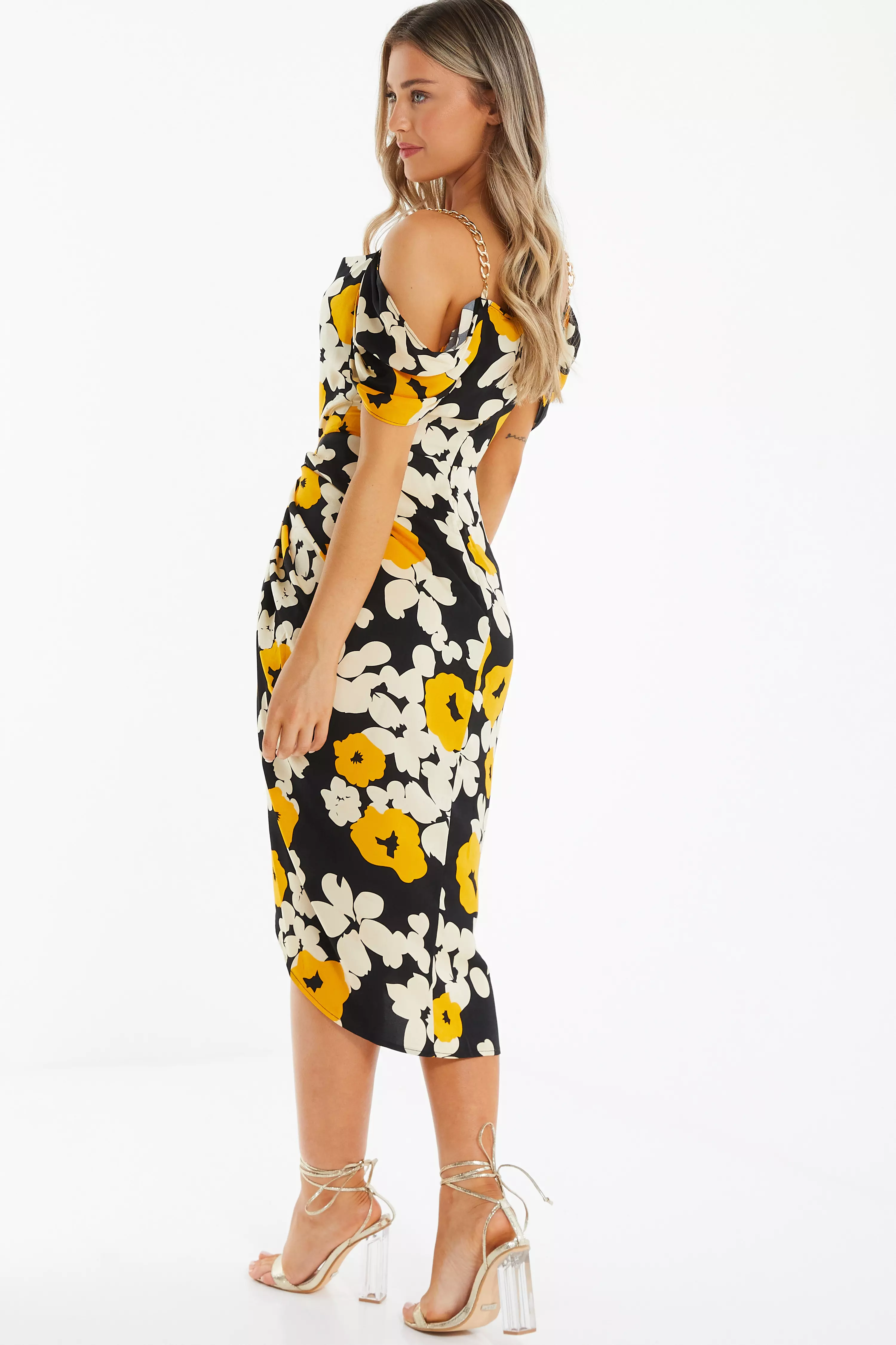 Black Floral Cold Shoulder Midi Dress QUIZ Clothing Very well made.
