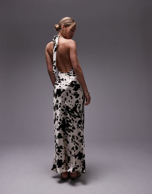 Topshop halter maxi dress in cow print Very well made.