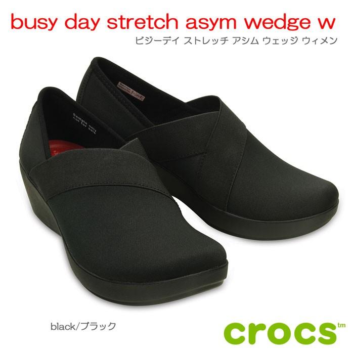 Crocs Busy Day Stretch Women s Black Asymmetrical Wedge Size 8 Very well made.