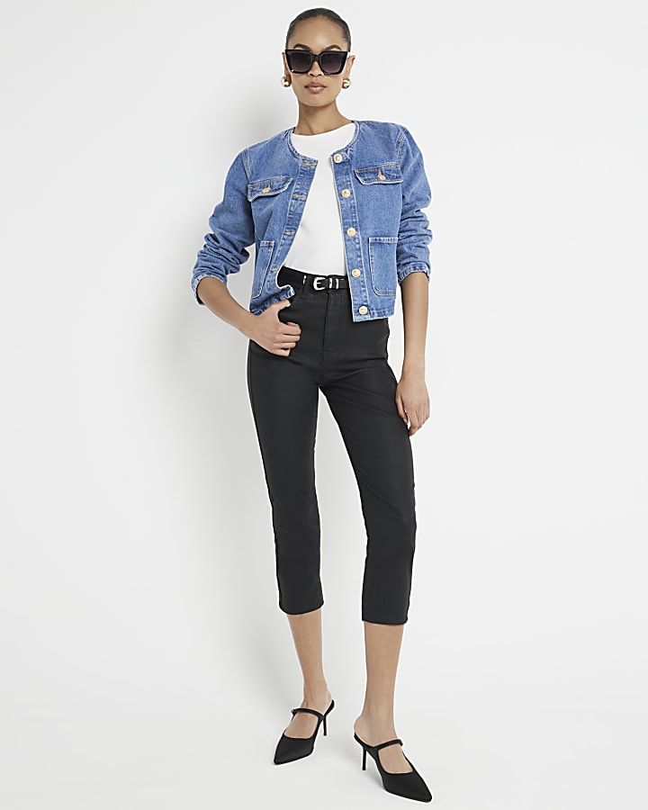 7 For All Mankind High Rise Cropped Coated Jeans Black Very well made.