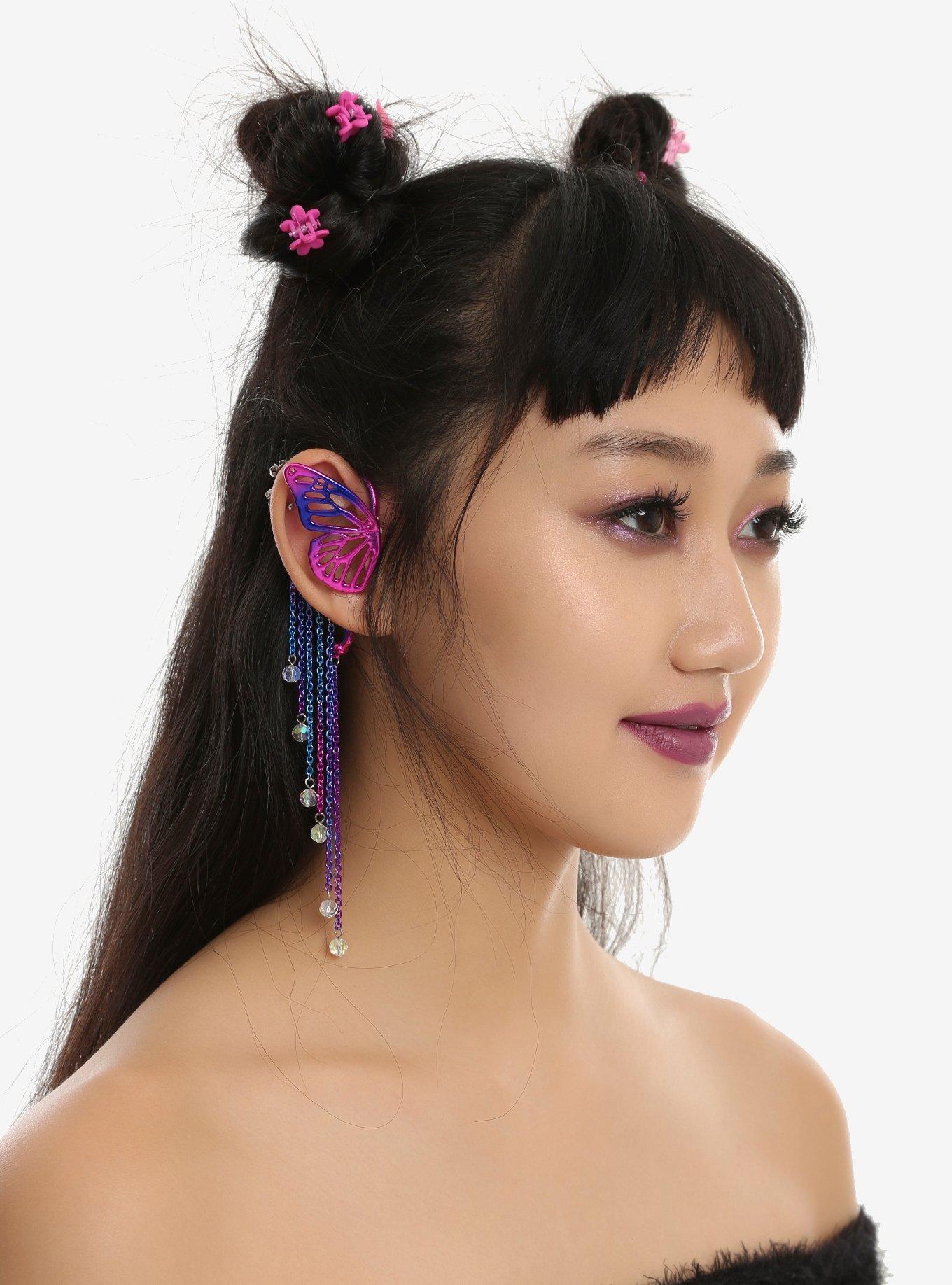 Blackheart Pink Purple Anodized Butterfly Chain Dangle Ear Cuff Hot Topic Very well made.