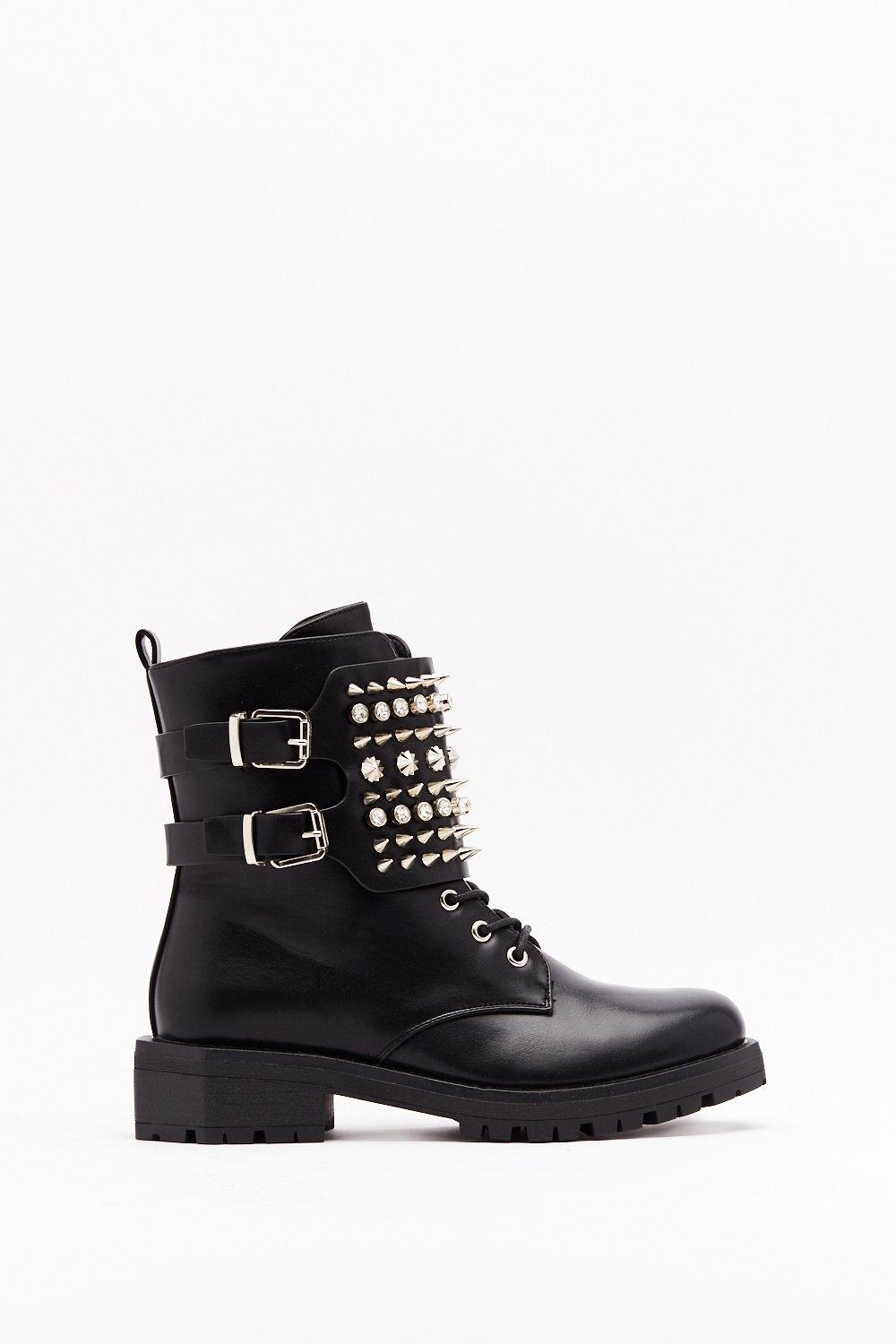Faux Leather Diamante Biker Boots boohoo UK Very well made.