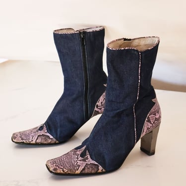 Blue Spinach Pre Loved Dior Navy Jacquard Trianon Boots in Very well made.