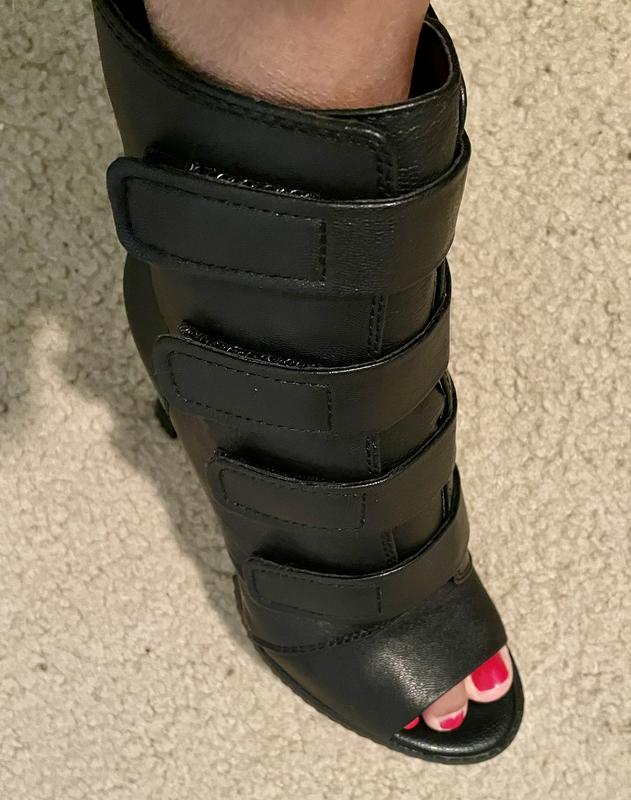 DKNY by Donna Karan Blake Strappy Leather Peep Toe Stiletto Booties Very well made.