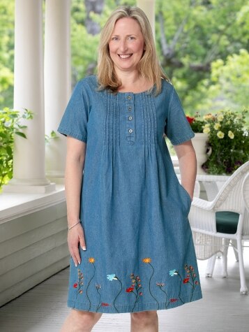 Women s Elegant Embroidered Denim Dress with Pintucks Very well made.