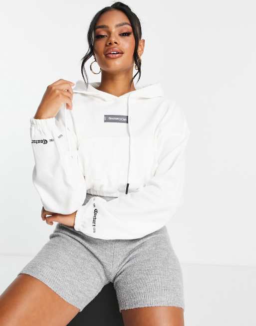The Couture Club Felpa da casa con cappuccio corta bianca a coste con scritta gotica in coordinato Very well made.