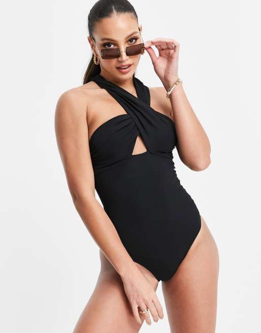Figleaves Tall Maillot 1 piece style Bardot a epaules denudees Noir ASOS Very well made.