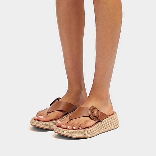 Fitflop F mode Espadrille Adjustable Leather Flatform Toe thongs Slides Brown US 6 Woman Very well made.