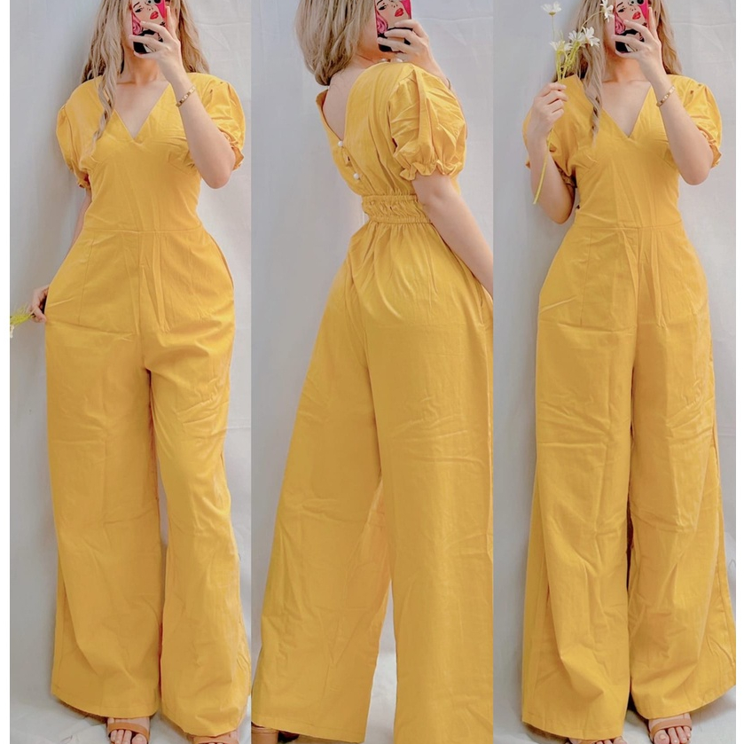 NEFRITY DIAMOND ELEGANT FORMAL JUMPSUIT CLASSY PUFF SLEEVE SMOCK BACK WIDE LEG JUMPSUIT FIT UP TO XL Shopee Philippines Very well made.