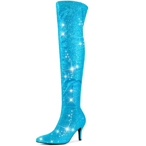 Perphy Women s Glitter Pointed Toe Size Zip Stiletto Heels Over The Knee Boots Lake Blue 8 Target Very well made.