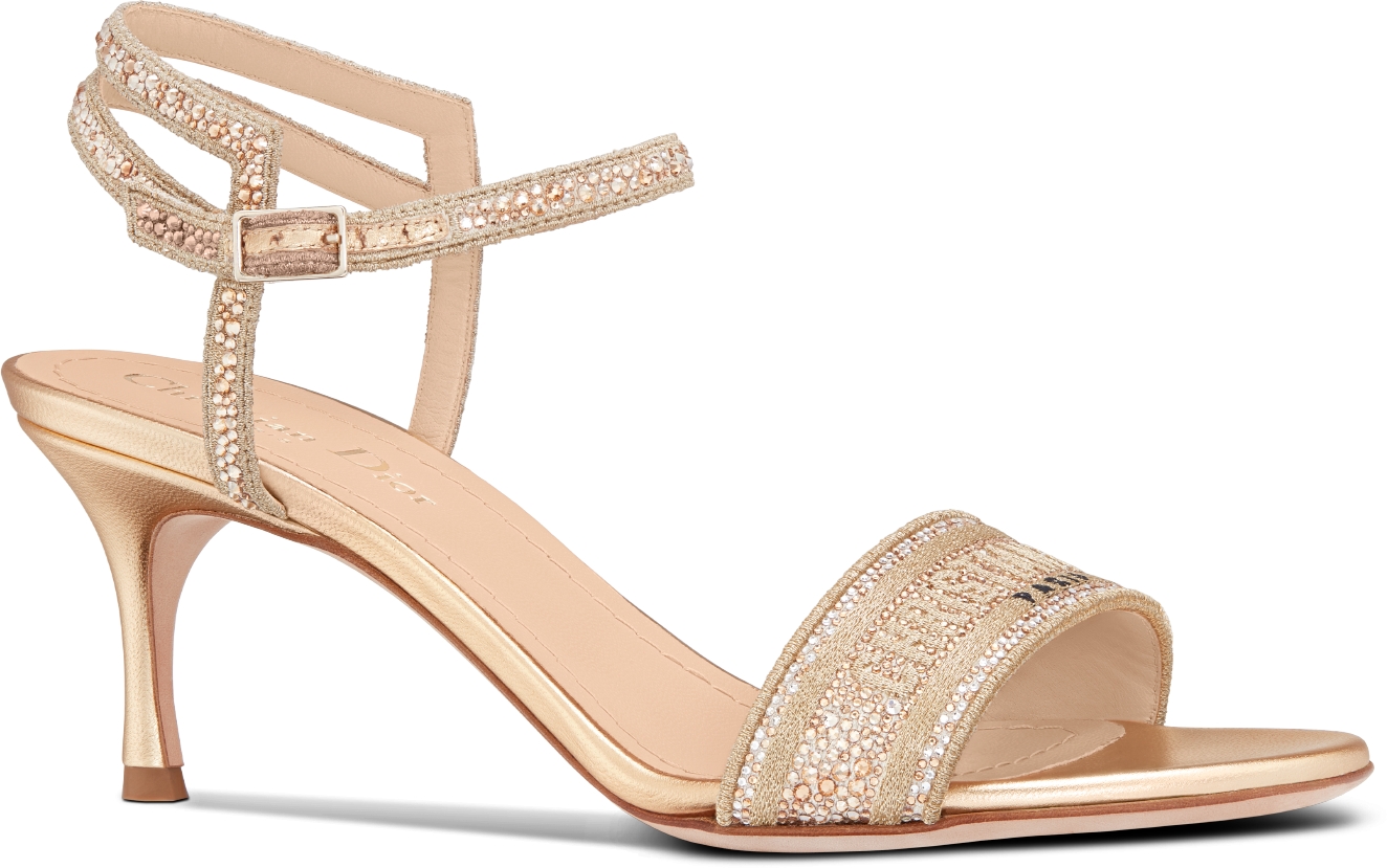 Dway Heeled Sandal Gold Tone Cotton Embroidered with Metallic Thread and Strass DIOR Very well made.