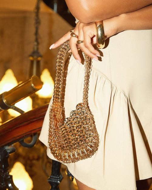 Symphony Textured Detail Shaped Clutch Bag In Gold Patent EGO Very well made.