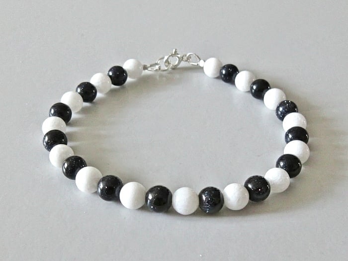 Sparkly Navy Blue Goldstone White Agate B. Folksy Very well made.