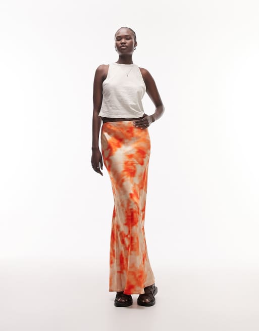 Topshop Tall Gonna lunga arancione con stampa tie dye ASOS Very well made.