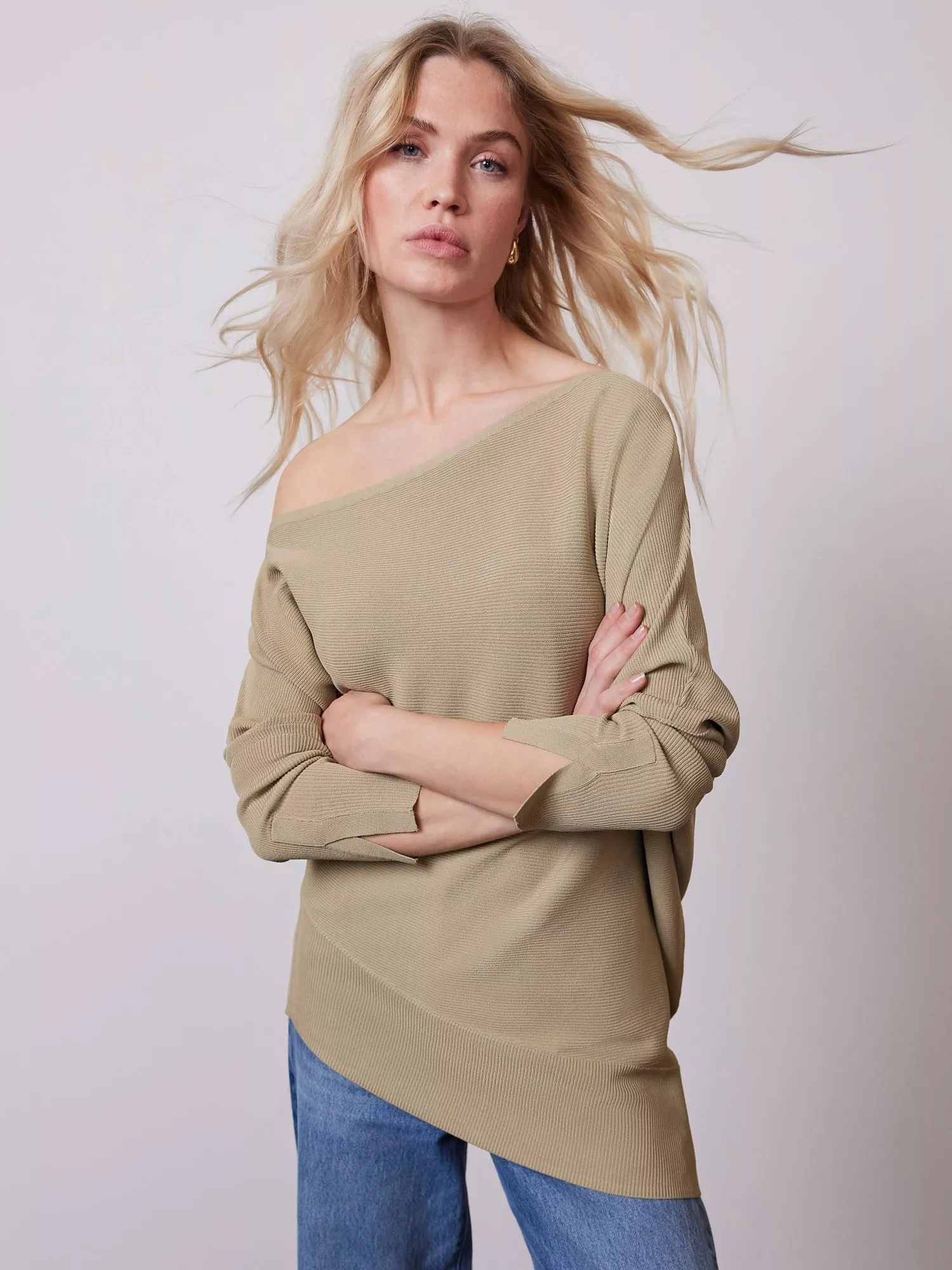Mint Velvet Asymmetric Ribbed Batwing Jumper Green Very well made.