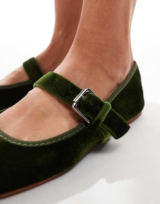 ASOS DESIGN Wide Fit Lou Mary Jane ballet flat in green velvet Very well made.