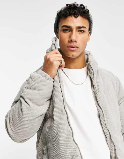 Brave Soul cord puffer jacket in ice gray ASOS Very well made.