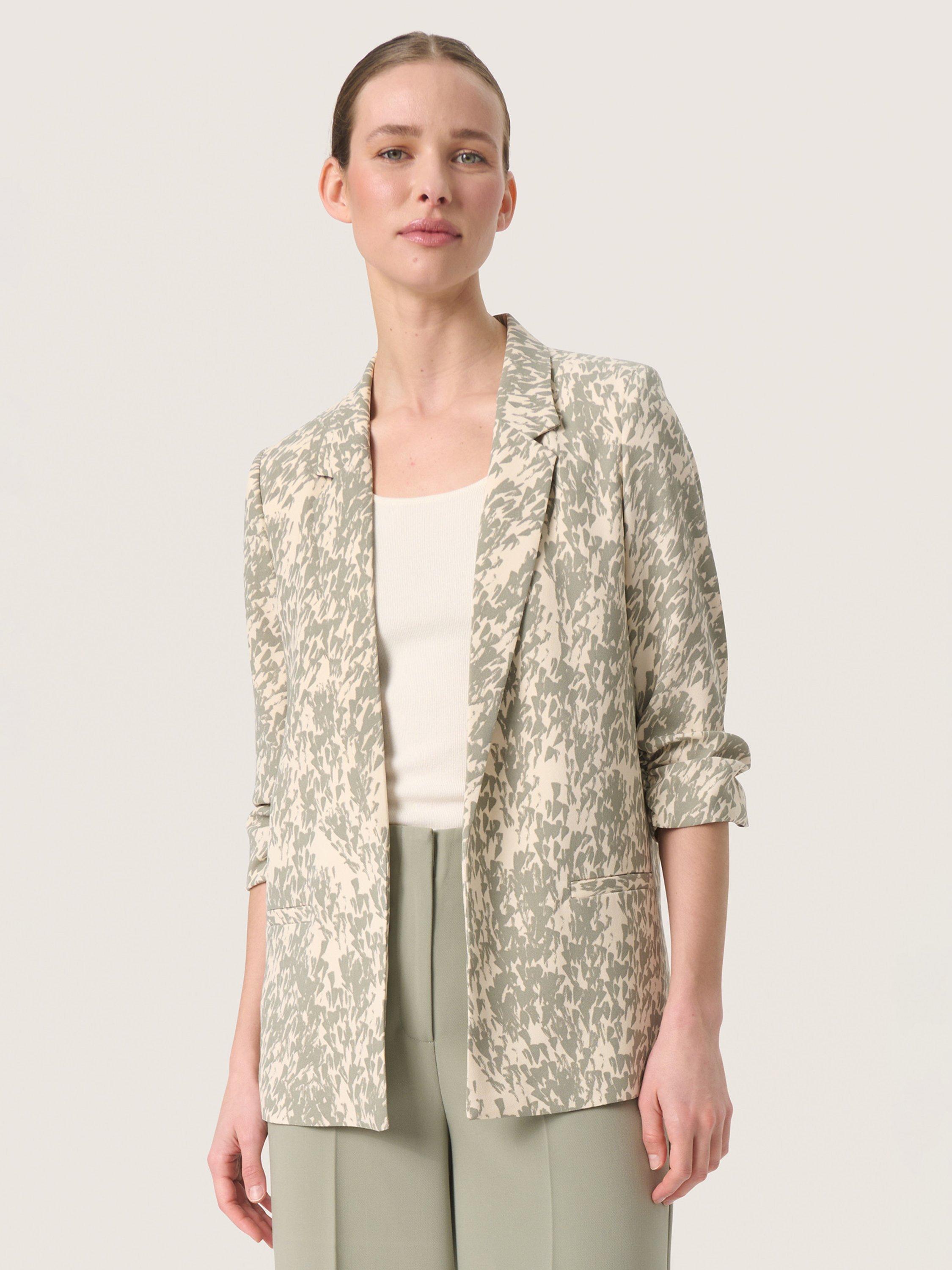 Soaked In Luxury Ruched Sleeve Blazer Grey Cream Very well made.