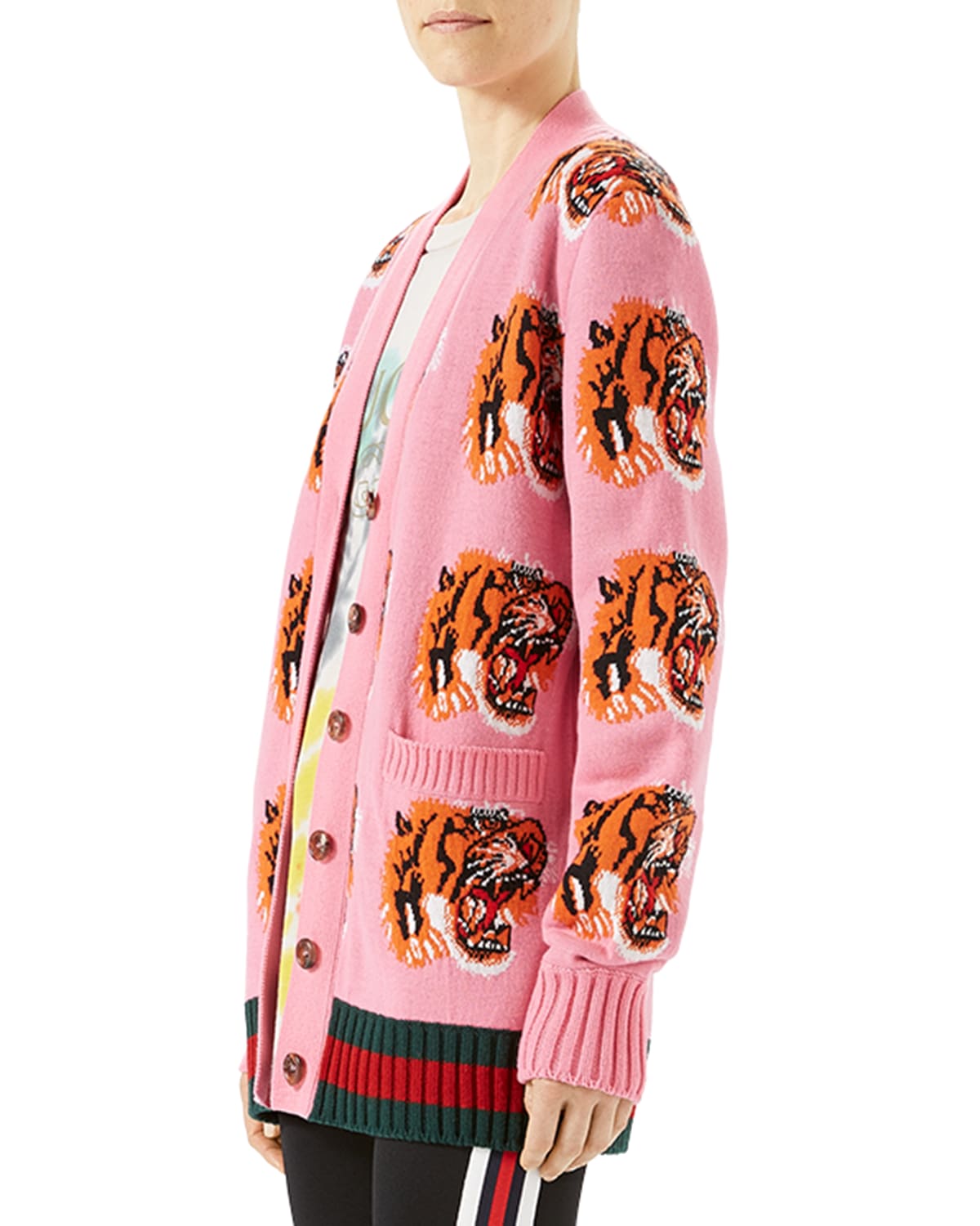 Wool Tiger Jacquard Cardigan Pink Very well made.
