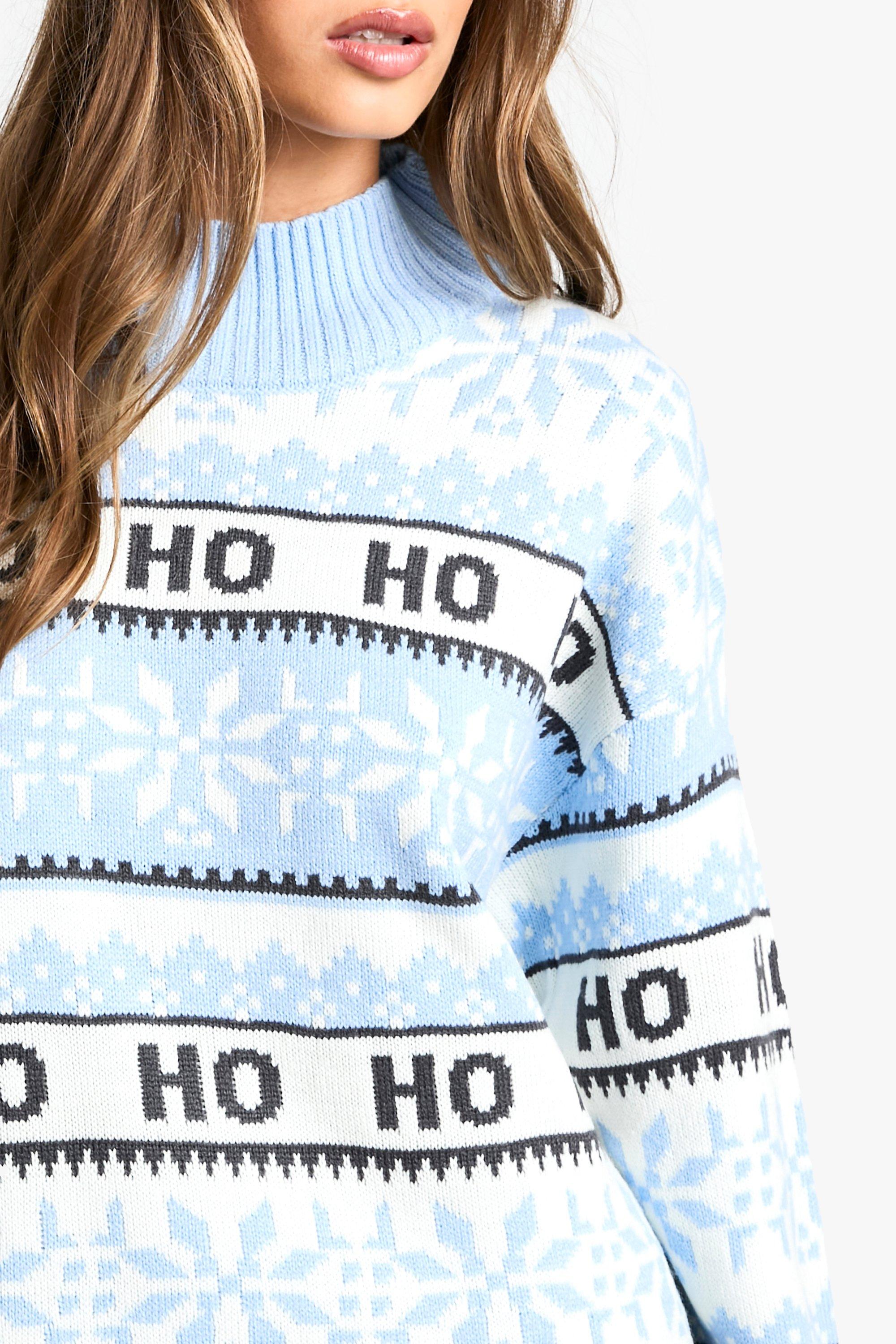 Boohoo Women s Christmas Ho Ho Ho Knitted Jumper Blue Very well made.