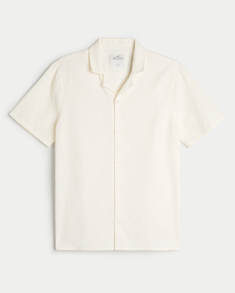 Men s Short Sleeve Textured Cotton Shirt Men s Sale HollisterCo Very well made.