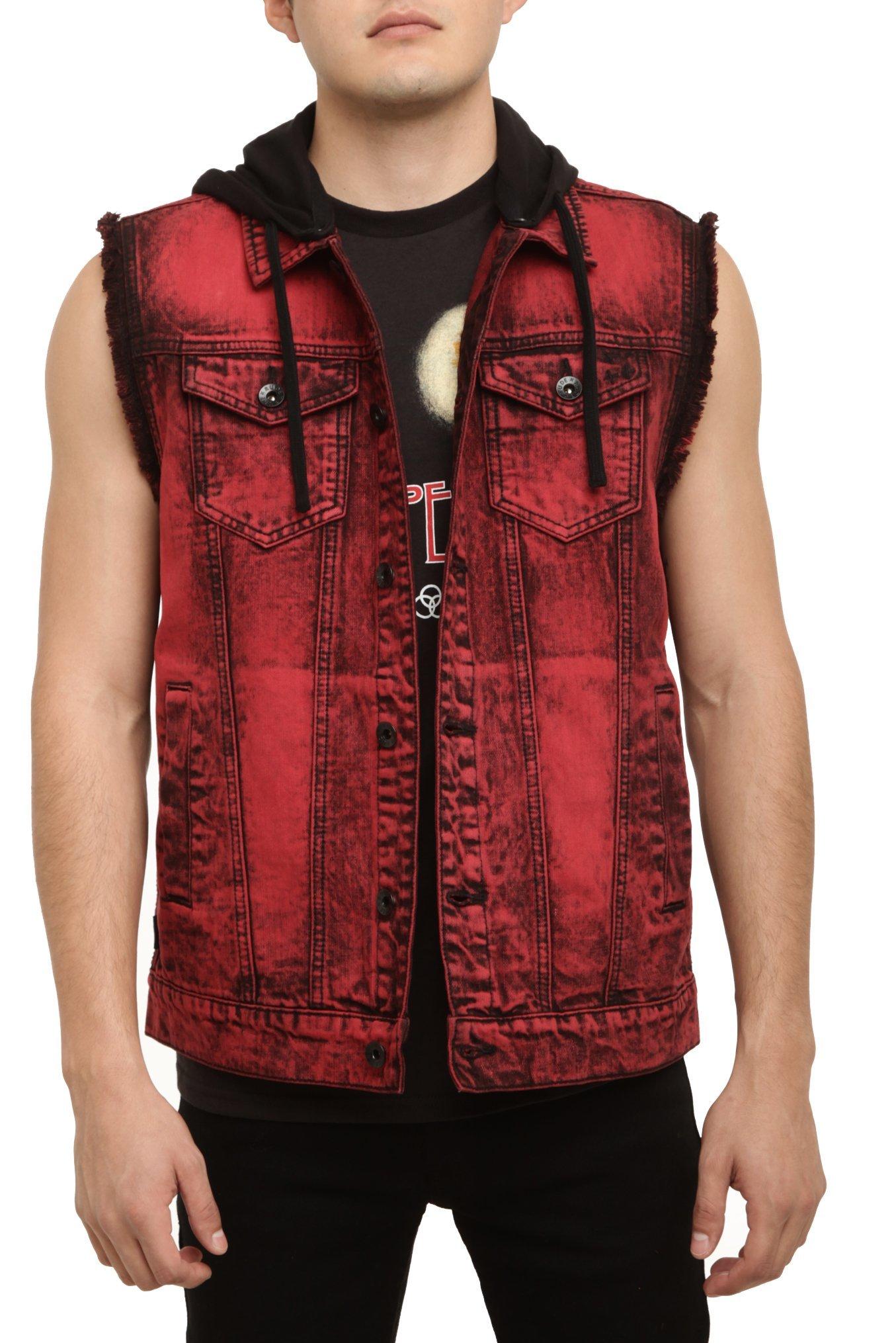 XXX RUDE Red Wash Hooded Denim Vest Hot Topic Very well made.