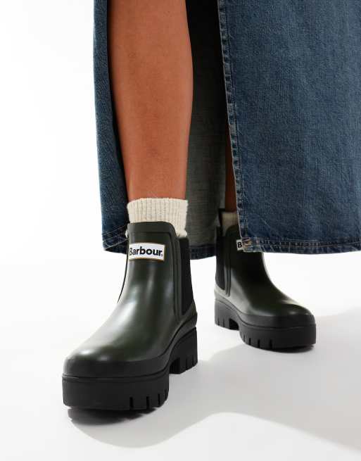 Barbour Halton chunky Chelsea wellington boots in olive ASOS Very well made.