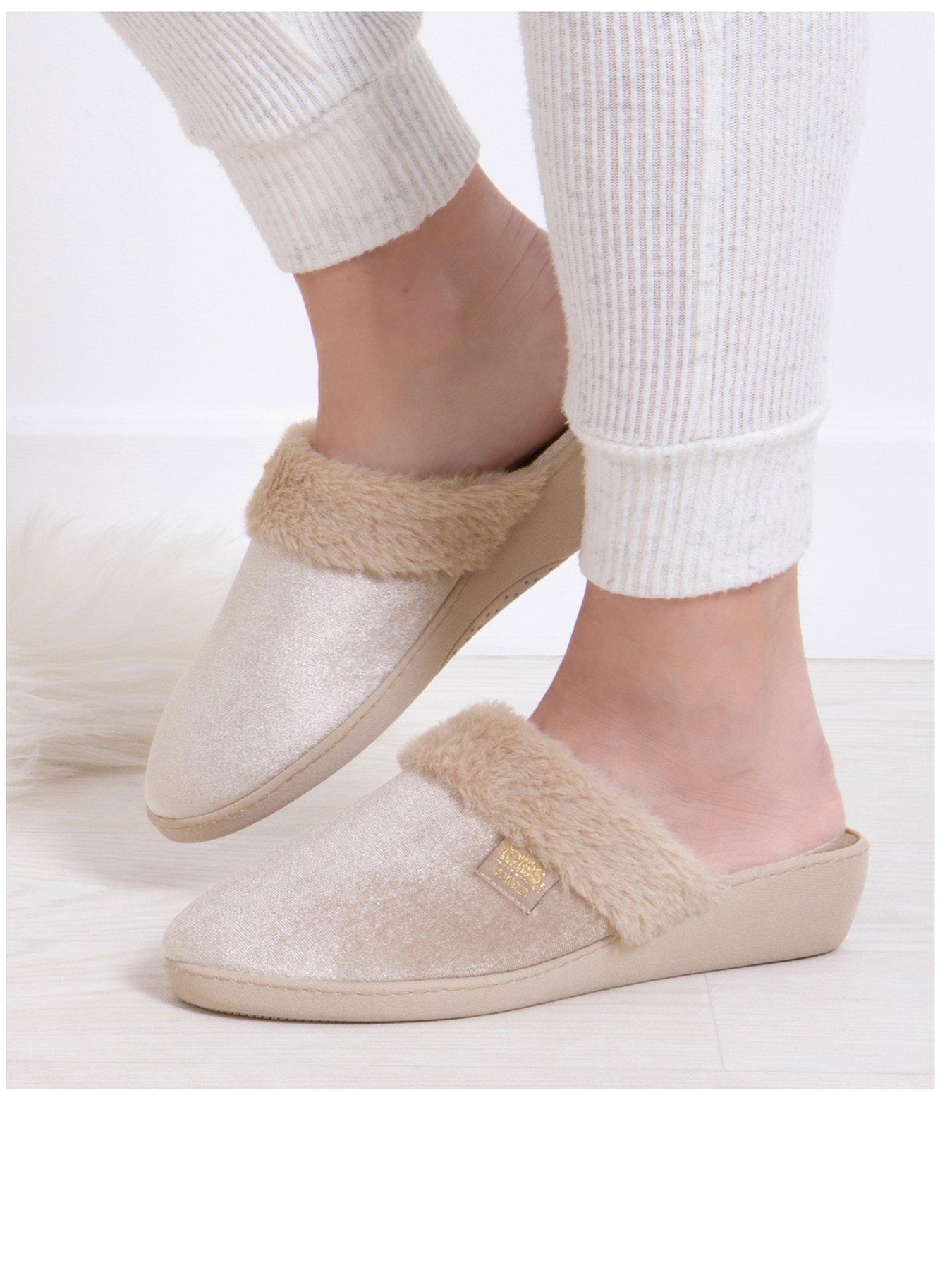 TOTES Totes Isotoner Sparkle Velour Heeled Mule Slippers Mink Very Ireland Very well made.