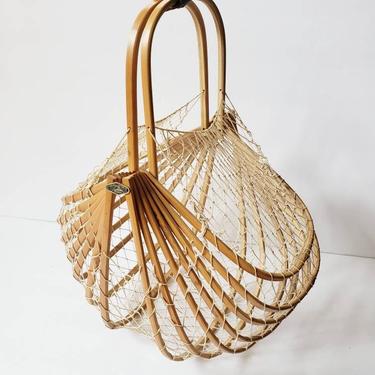1960s Japanese Bamboo and Robe Handbag Collapsible 60s Picnic Basket RareJule Vintage Chicago IL Very well made.