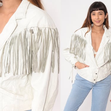 80s White Leather Fringe Crop Jacket Amazing. Depop Very well made.