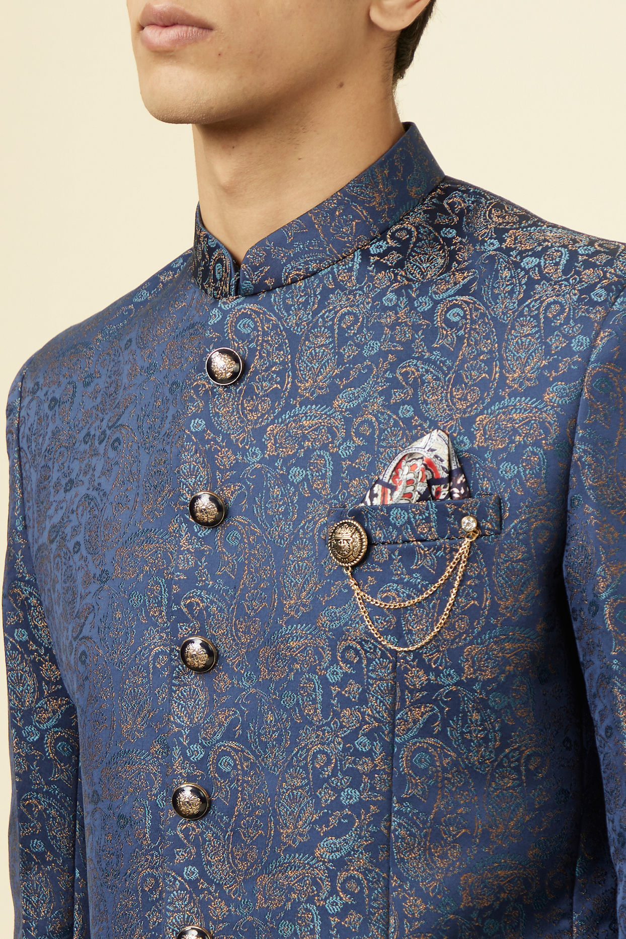 Buy Dark Sapphire Blue Paisley Patterned Suit Online in India Manyavar Suit Set for Men Very well made.