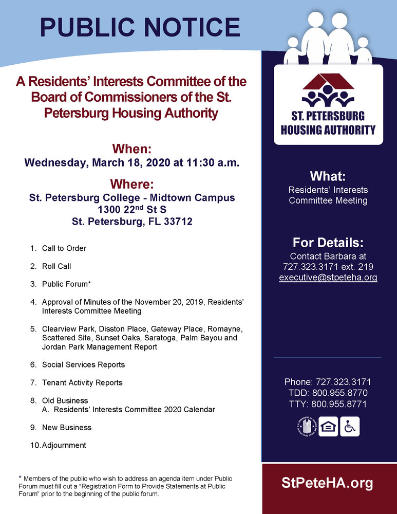 CANCELED Public Notice March 18 Residents Interest Meeting 03 11 2020 Latest News St. Petersburg Housing Authority RISE St. Petersburg Florida Very well made.