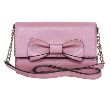 Kate Spade Mauve Pink Leather Bow Front Flap Crossbody Current Boutique DMV Bethesda Clarendon DC Old Town Very well made.
