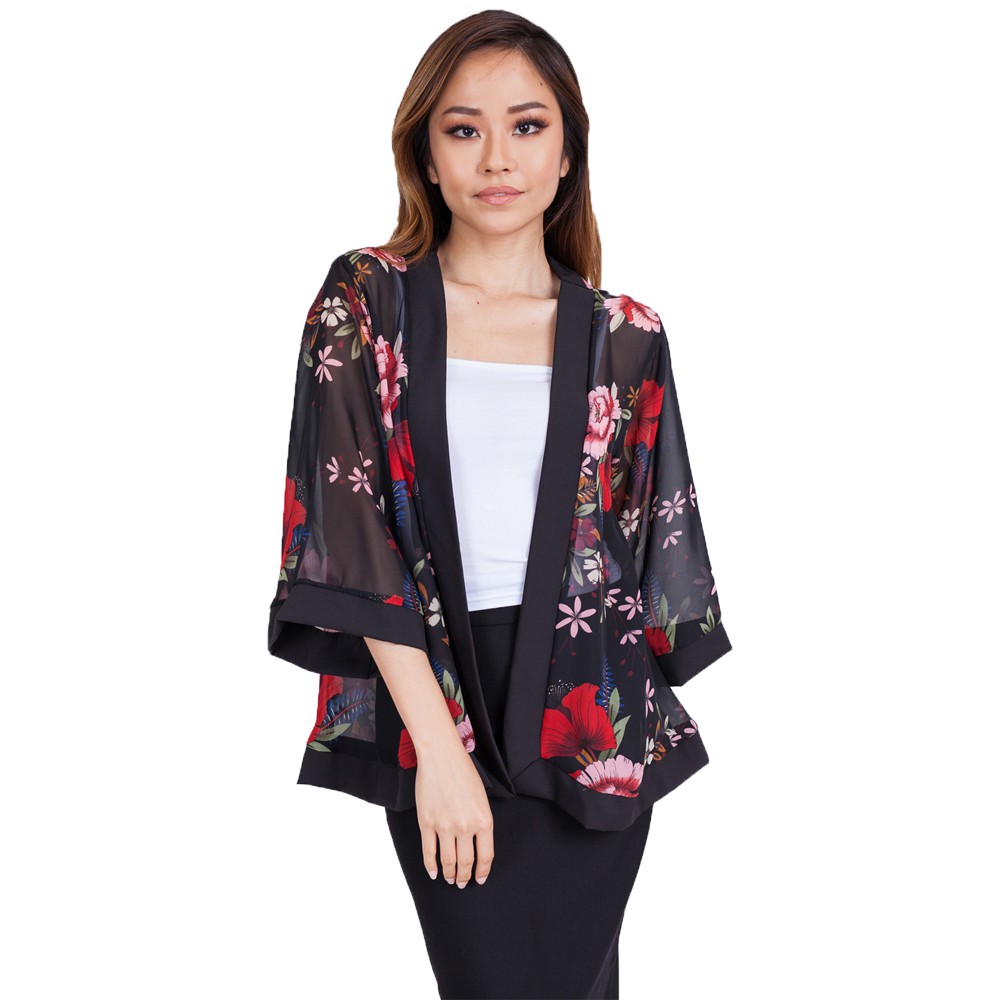 Red Floral Chiffon Kimono Cardigan Top Shopee Malaysia Very well made.