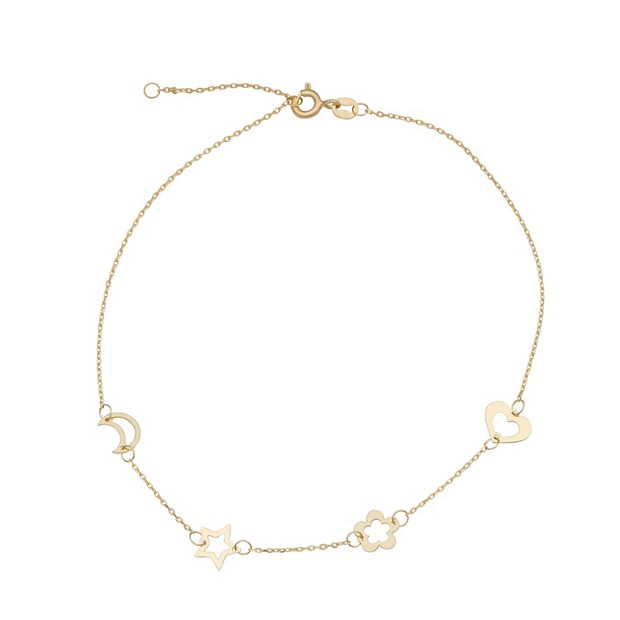 Au Naturale 14k Gold Heart Flower Star Moon Charms Station Anklet Very well made.