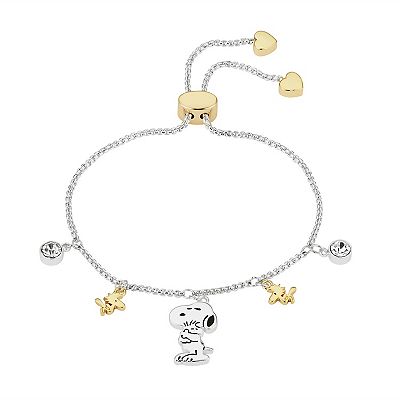 Peanuts Two Tone Fine Silver 14k Gold Plated Crystal Snoopy Woodstock Adjustable Charm Bracelet Very well made.