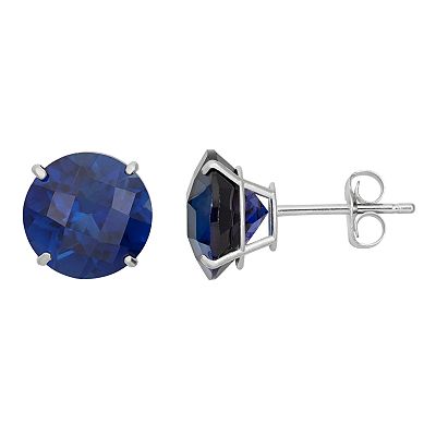 Lab Created Sapphire 10k White Gold Stud Earrings Very well made.