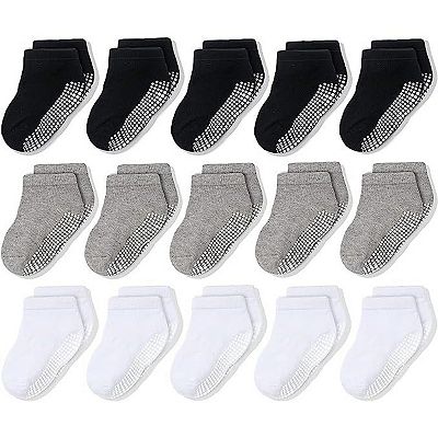 Non slip Ankle Grip Low Cut Kids Socks 15 Pack Black white gray 5 7 Years Old Very well made.