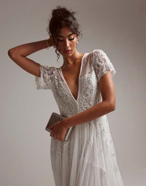 ASOS DESIGN Frankie Vestito da sposa con maniche ad aletta in rete con perline e scollo profondo ASOS Very well made.