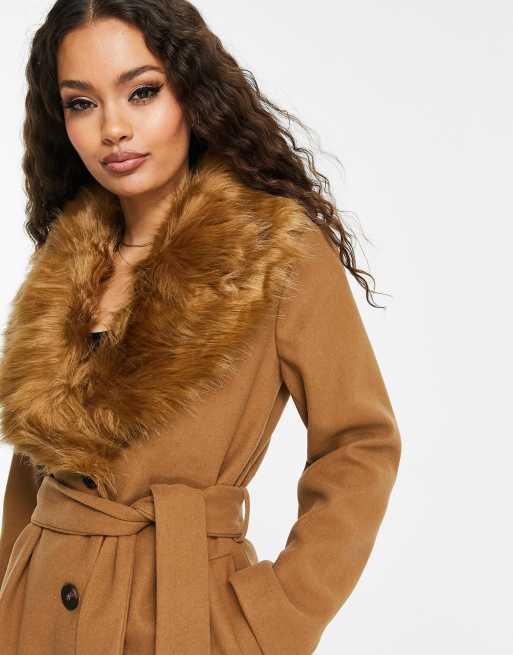 Vila Petite belted coat with fur collar in camel ASOS Very well made.