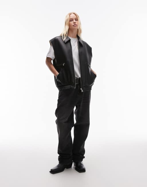 Topshop faux leather shearling gilet in black Very well made.