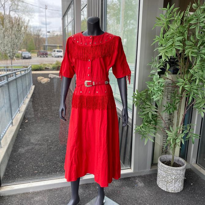 Lilia Smith Exclusive 70s Vintage Turquoise Western Fringe Dress size 12 Very well made.